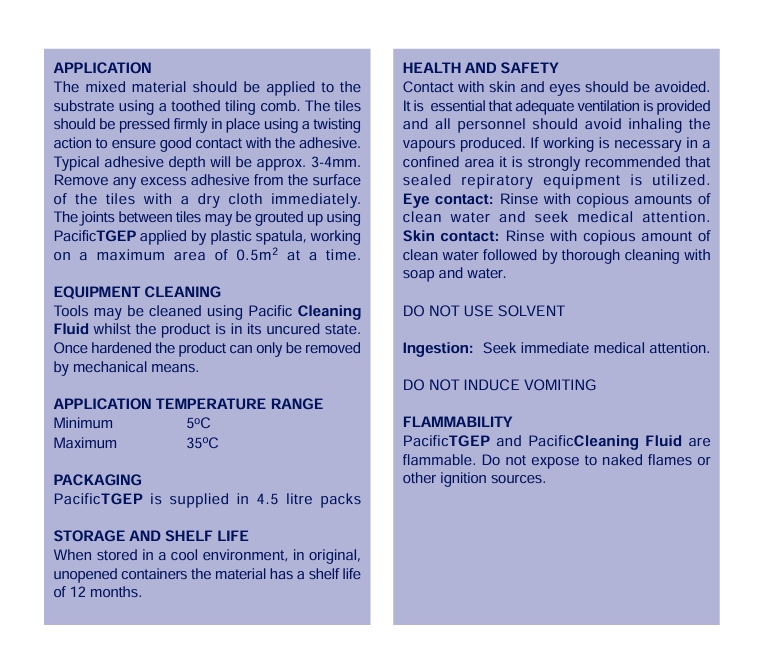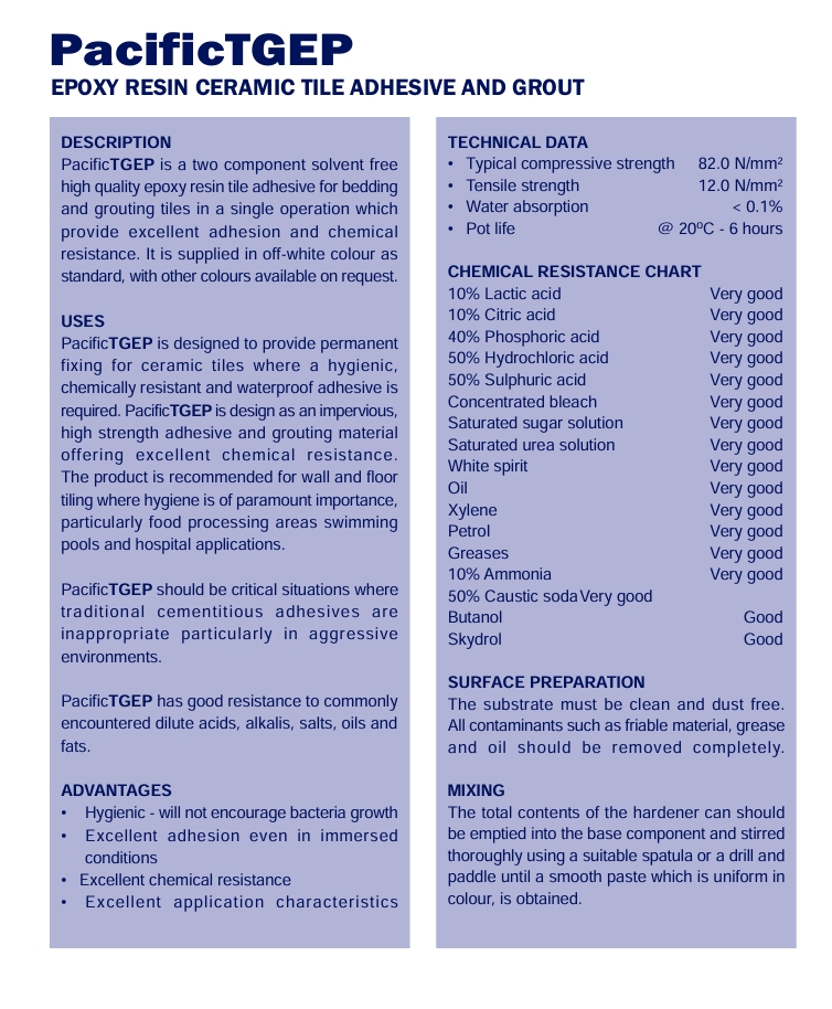 EPOXY RESIN CERAMIC TILE ADHESIVE AND GROUT