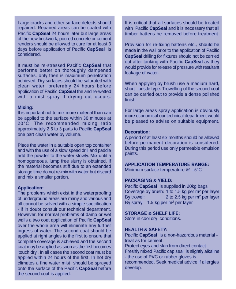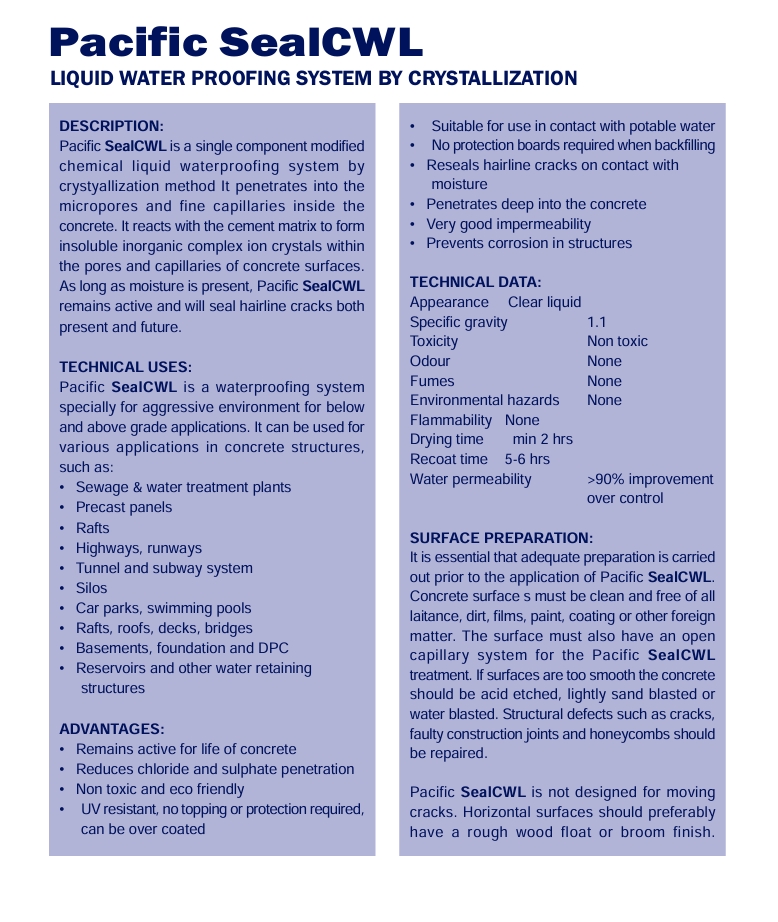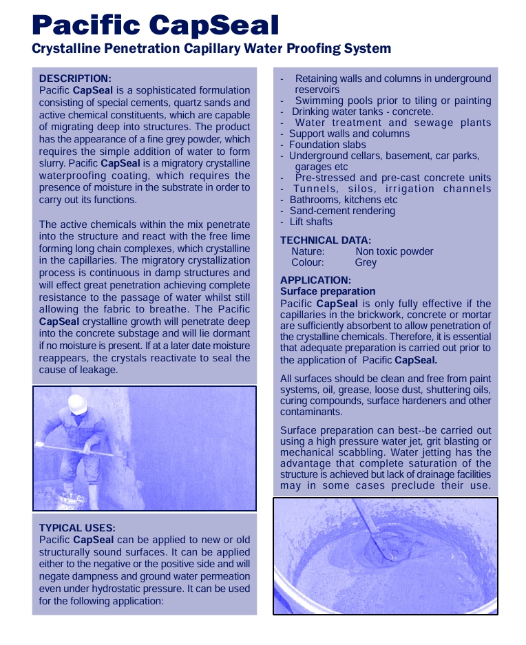 Crystalline Penetration Capillary Water Proofing System