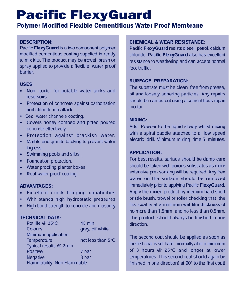 Polymer Modified Flexible Cementitious Water Proof Membrane